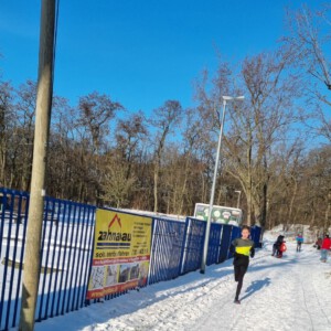 In den Tagen vor dem Lauf gab es noch Presseberichte, dass die Organisatoren wegen der Nässe und randalierenden Wildschweinen Probleme mit der Strecke hatte. Davon war am Wettkampftag fast nichts mehr zu sehen. Die neue Strecke ist sehr gut gewählt und deutlich kurzweiliger. Zwar schien die Sonne, aber die Temperaturen waren mit ca. -4 Grad Celsius recht niedrig. Dazu kam ein hässlicher Wind, der die Temperaturen noch niedriger erscheinen ließ. So manche Teilnehmerin und Teilnehmer fragte sich vor dem Start, welche Sachen wohl am geeignetsten wären.
